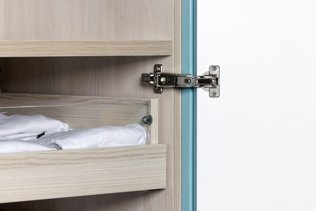 בקומבו אנחנו משתמשים בצירי דלתות שנפתחים לזווית רחבה במיוחד של 155 מעלות, כך שהמגירות מנצלות את מלוא הרוחב של הארון בלי בעיות.